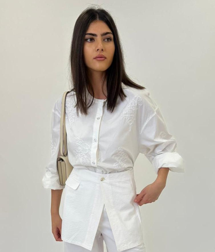 قميص بأزرار مزين بالزهور