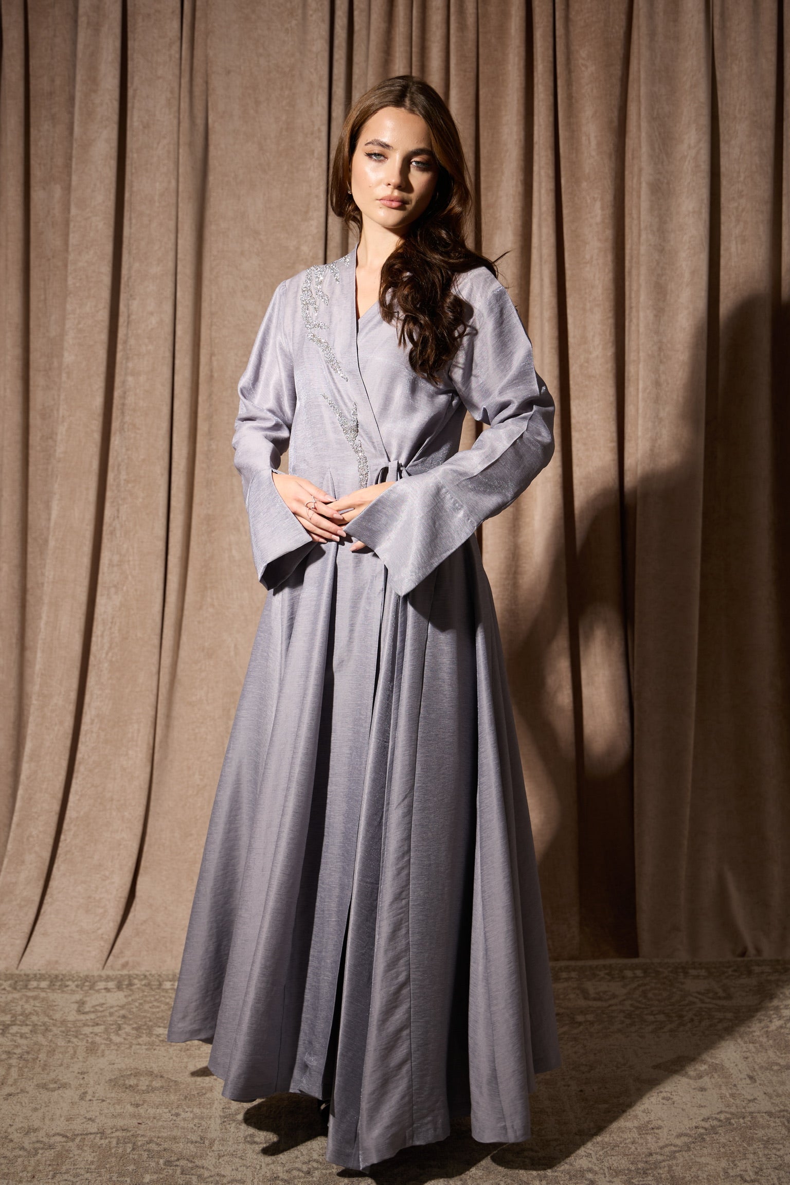 Accessible luxury that doesn't compromise on sparkle. The Crystal Wrap offers elegant crystal detailing in a flattering wrap silhouette at our most approachable price point. The wrap design is forgiving and adjustable, making it a confident choice for all body types. Add instant glamour to your Ramadan evenings without the premium price tag.
