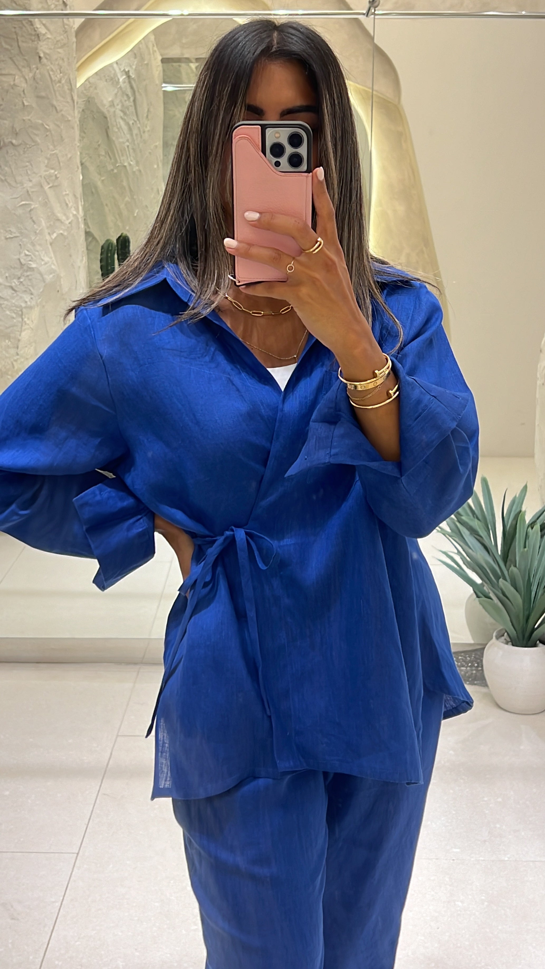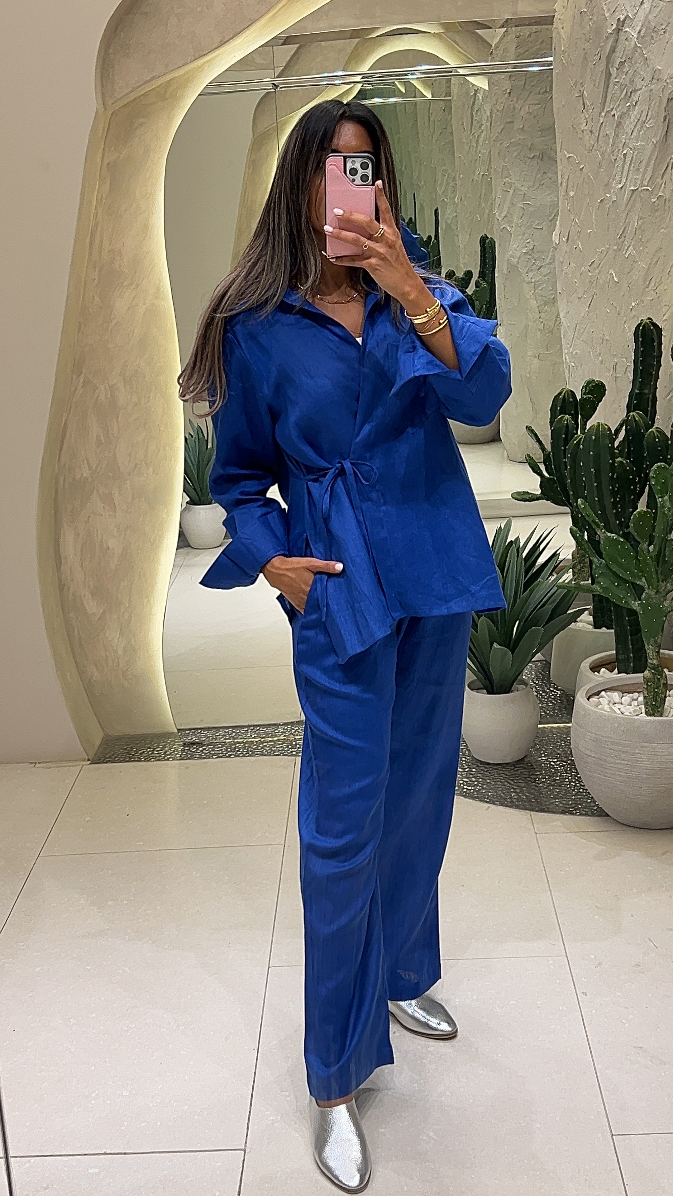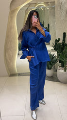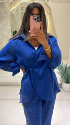 Shop the Linen Set - Electric Blue for women. This trendy, breathable set is perfect for summer days, offering comfort and style. Get yours today at a great price!