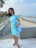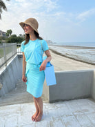 - Set includes Top, Shorts, and Wrap Skirt
